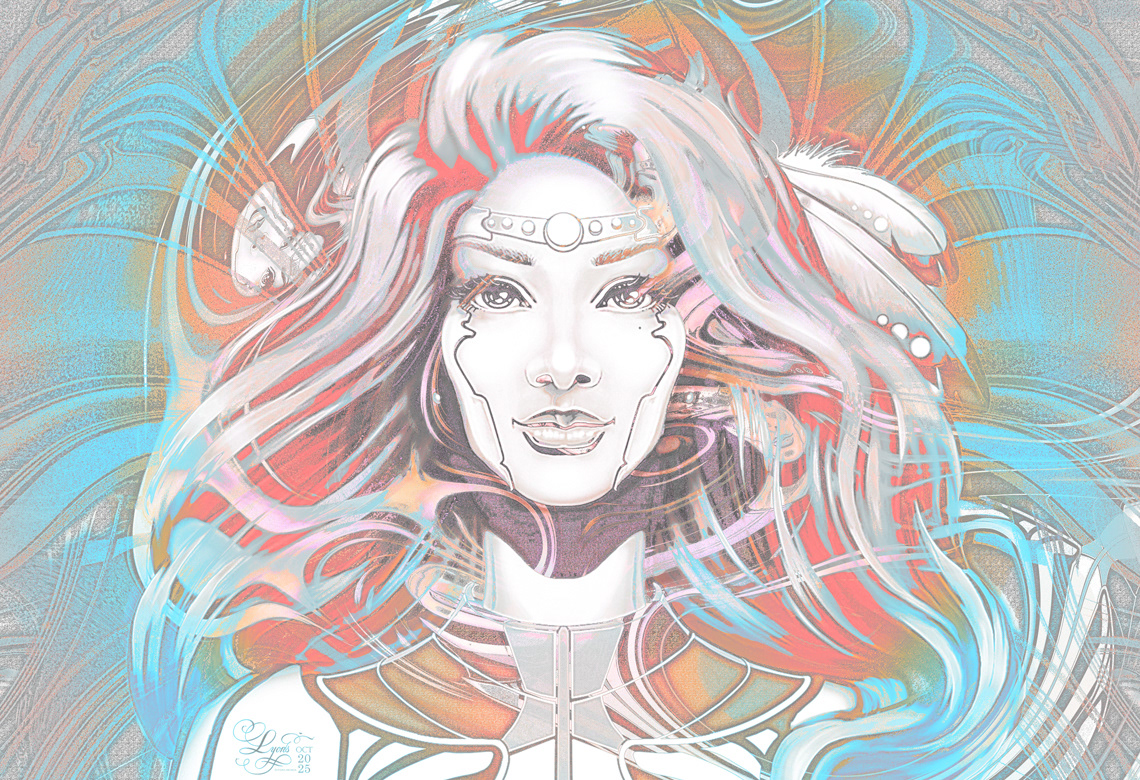 Michigan Odawa Indian Dot Portrait. 13 x 19 in. Giclee. October 2025. No AI.